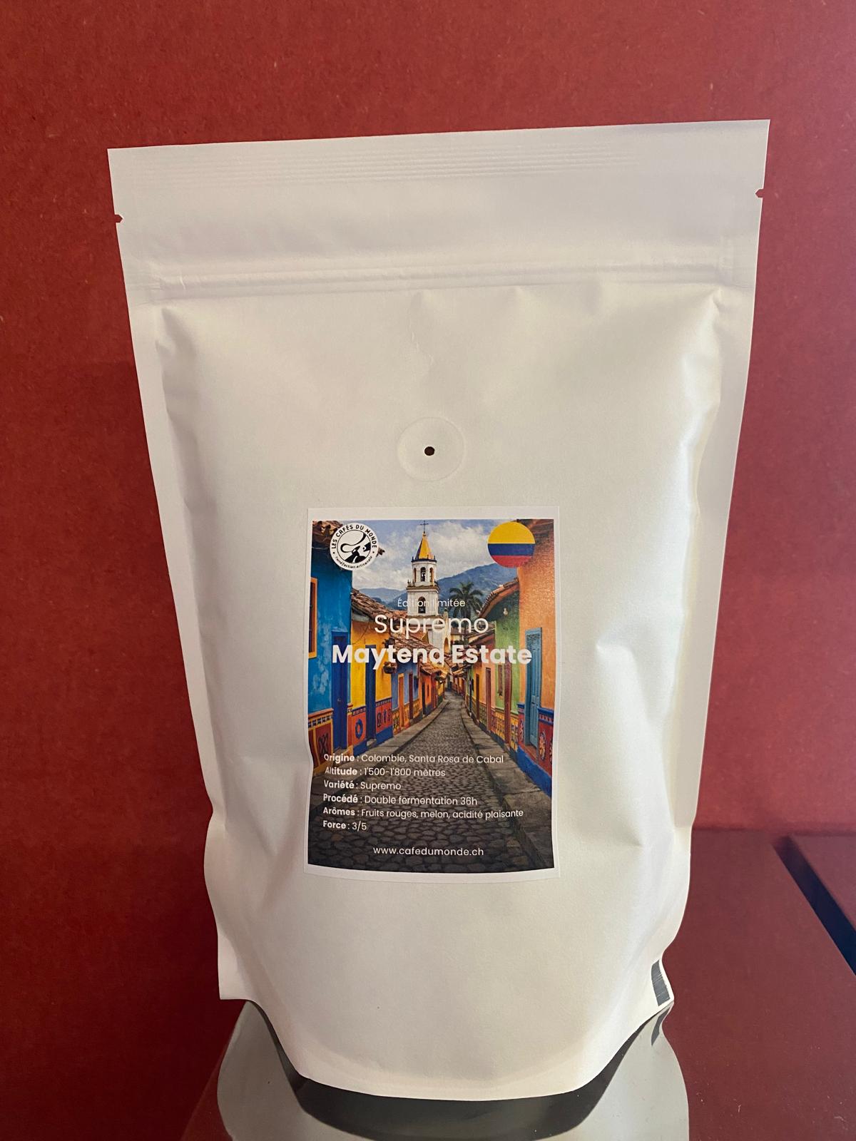 Le Supremo Maytena Estate est un café de spécialité cultivé entre 1500 et 1800 mètres d’altitude dans la région de Santa Rosa de Cabal, en Colombie.